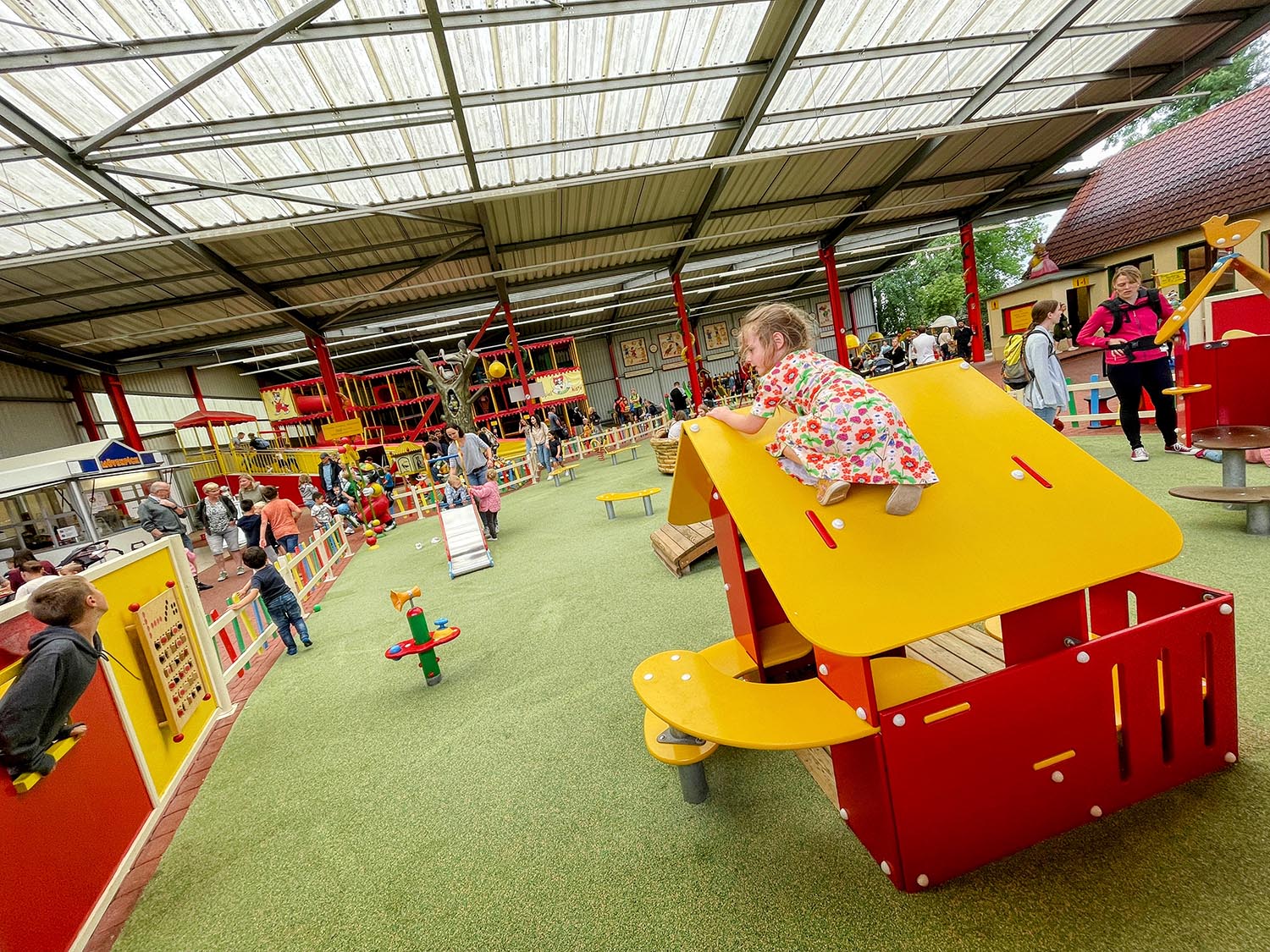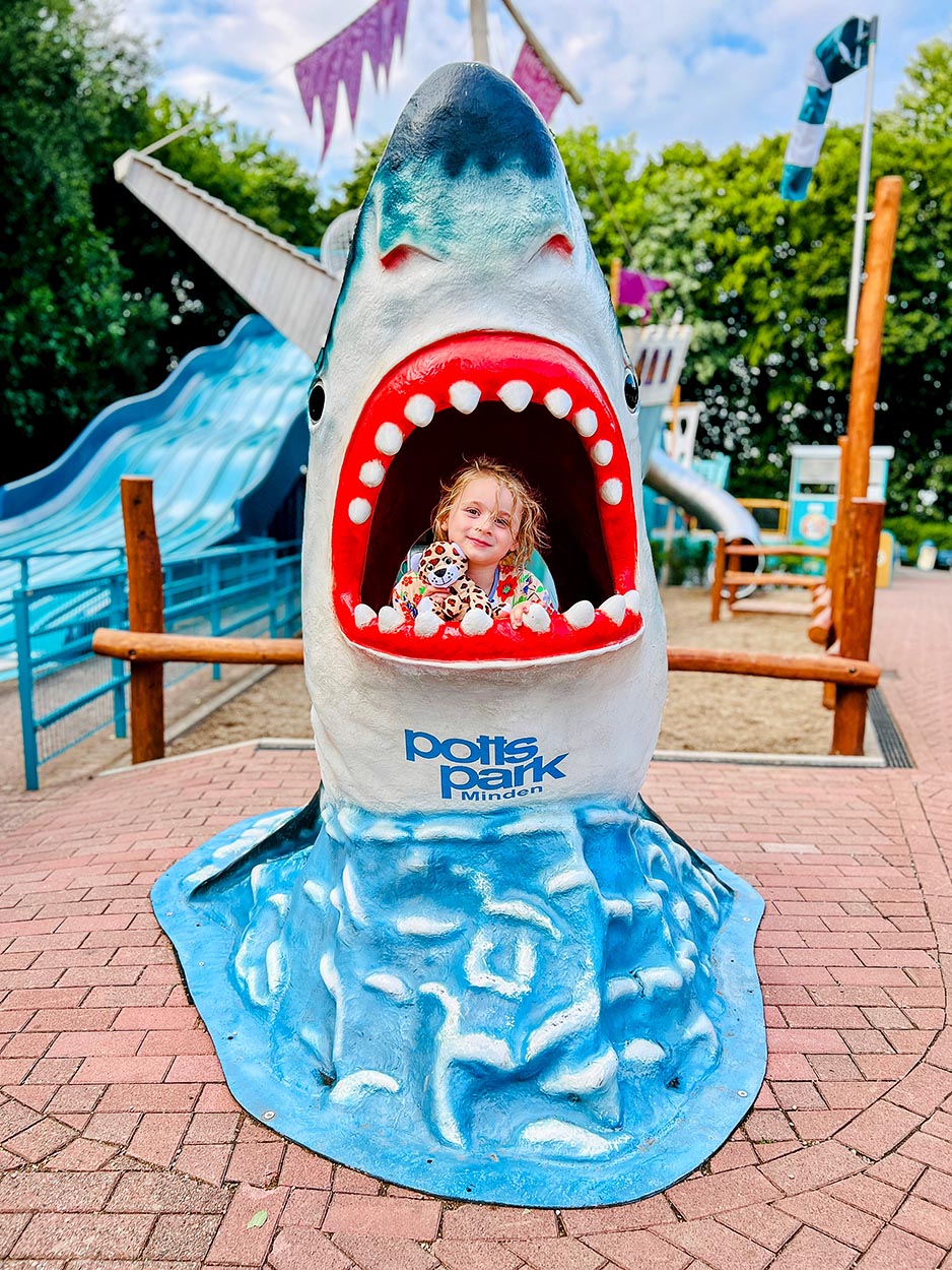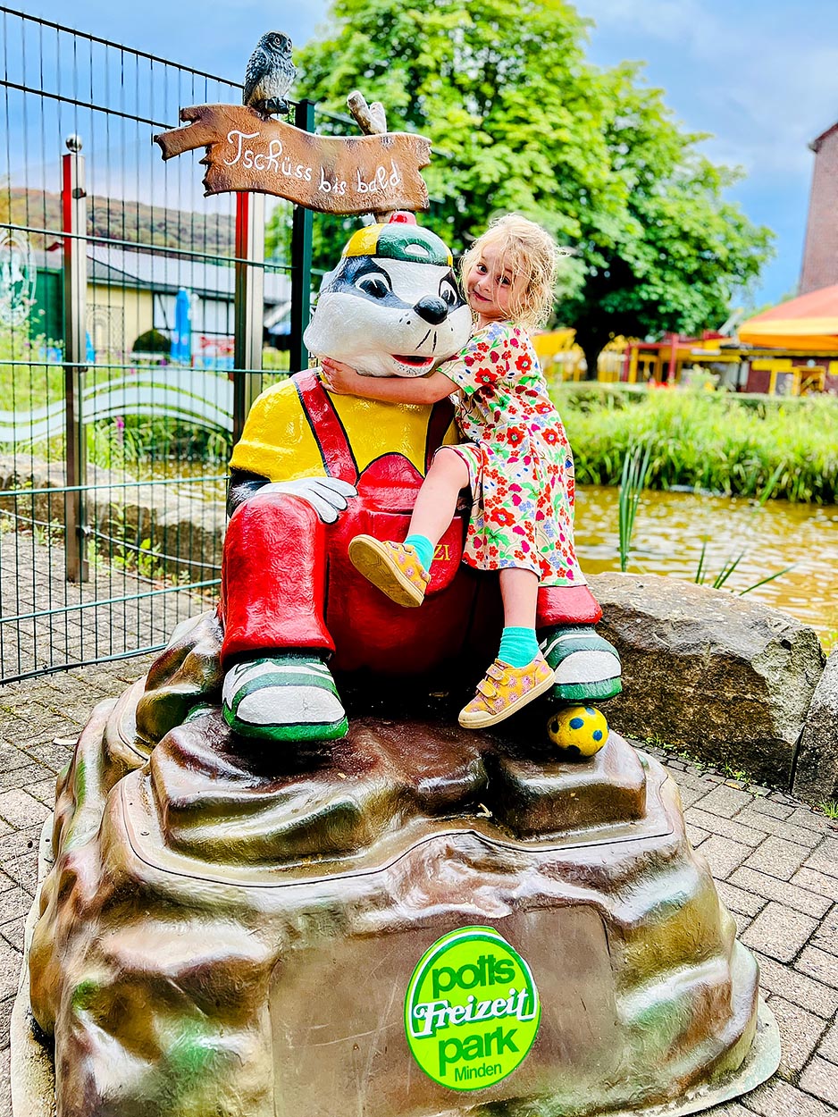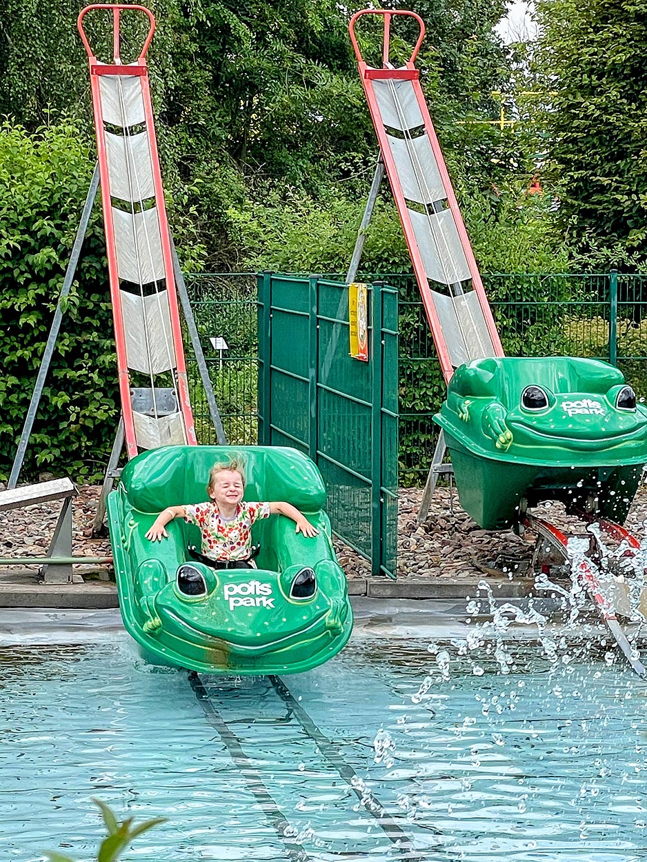 Potts Park krijgt trouwens ook nog een pluim voor kindvriendelijkheid. Oké, de doelgroep van dit park is duidelijk families met jonge kinderen maar toch. We weten intussen al hoe kindvriendelijk Duitsland is. Een mooi voorbeeld waren de toiletten, waar in het toiletgebouw een apart kamertje was met een schattige, lage deur waarin 3 kindertoiletjes stonden. Heeeeel handig voor ons kindje dat absoluut niet houdt van vreemde toiletten en superbang is voor zelfdoorspoelende of van die zelfreinigende toiletten. Ze weet dat kindertoiletjes oké zijn, dus ging ze gemakkelijk mee naar de wc zonder dat ze een hele dag haar plas ophoudt. (Been there, done that… meermaals op vakantie…)